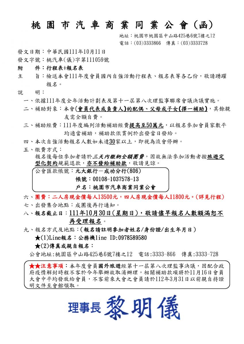 桃園市汽車商業同業公會111年度會員國內自強活動