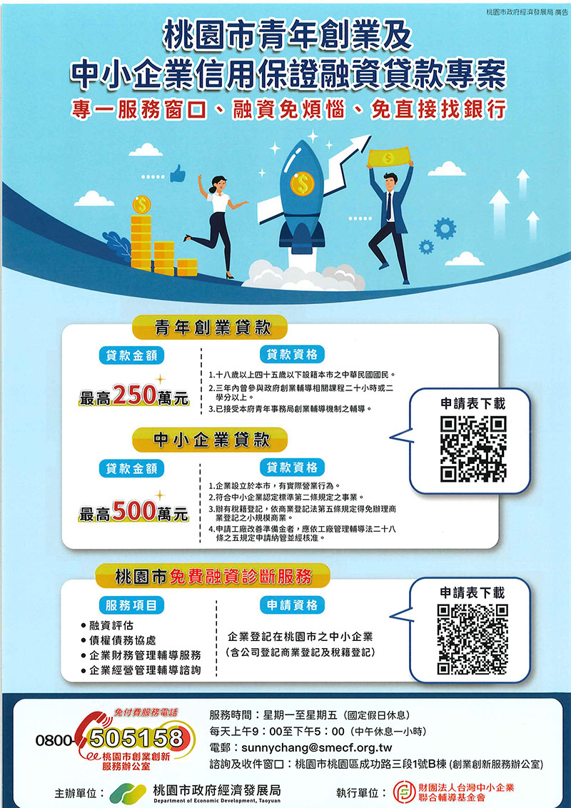 [函轉]桃園市政府經濟發展局-「青年創業及中小企業信用保證融資貸款專案」