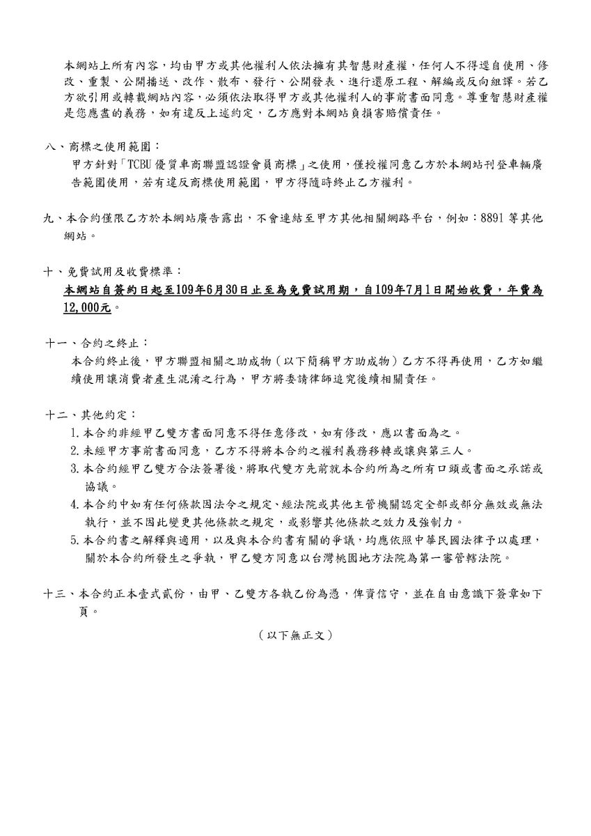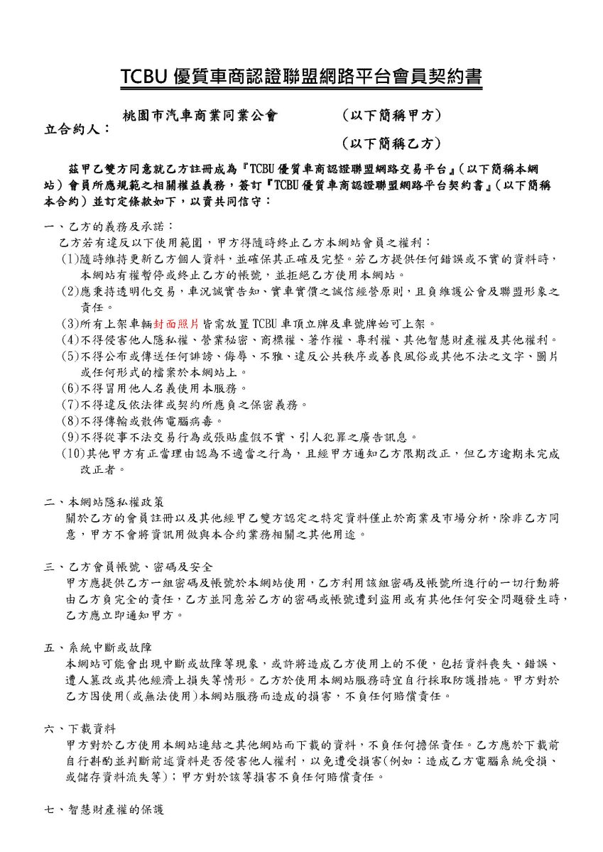 TCBU網路平台會員契約書下載