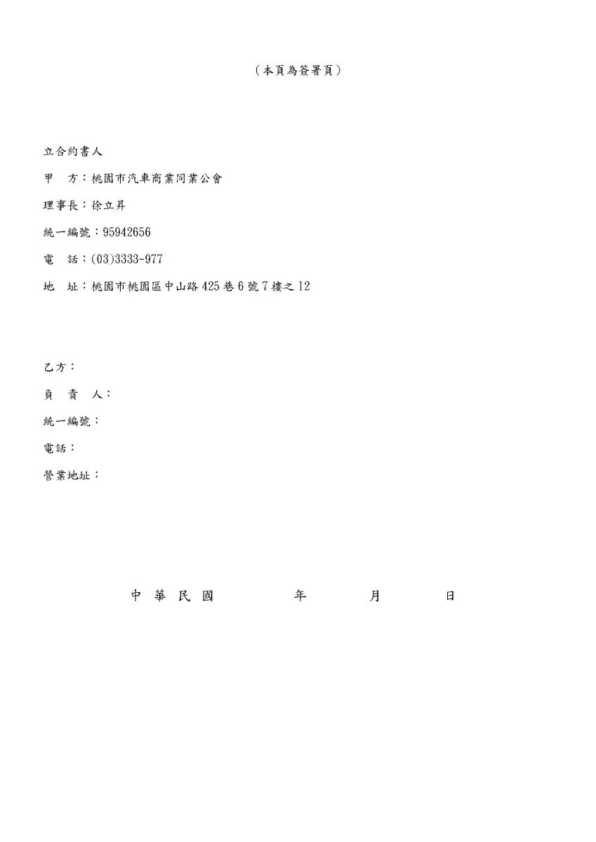契約書正本與以上資料一起郵寄至公會(桃園市桃園區中山路425巷6號7樓之12)蔡恒宜小姐收