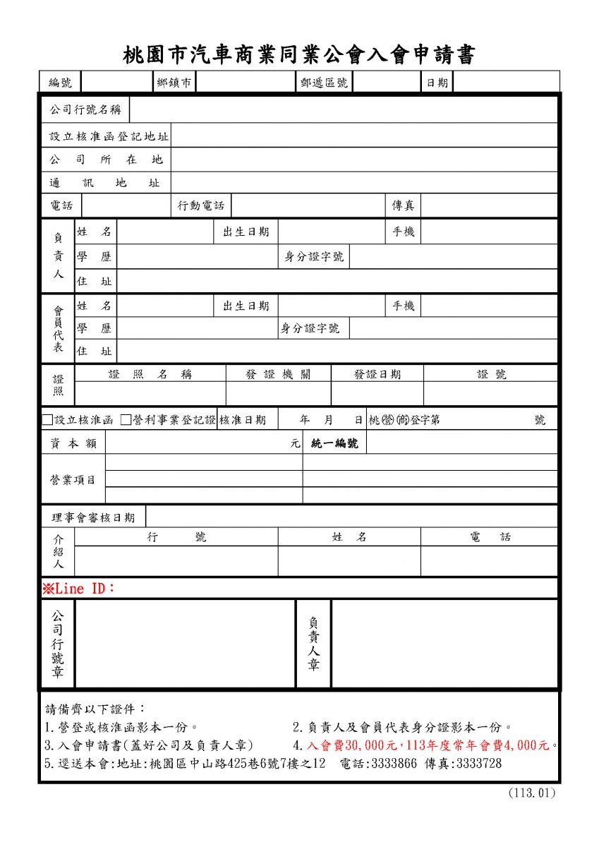 公會入會申請書下載