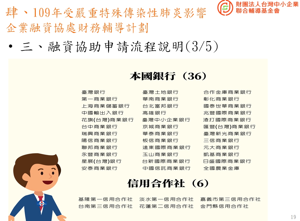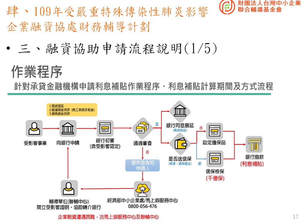 如果各位日後在公司經營上有任何財務/管理或政府補助問題都可洽詢「財團法人台灣中小企業聯輔基金會」,他們平常就受理企業經營輔導工作,不限在疫情期間