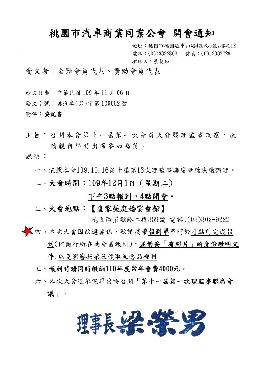 [開會通知]第十一屆第一次會員大會暨理監事改選