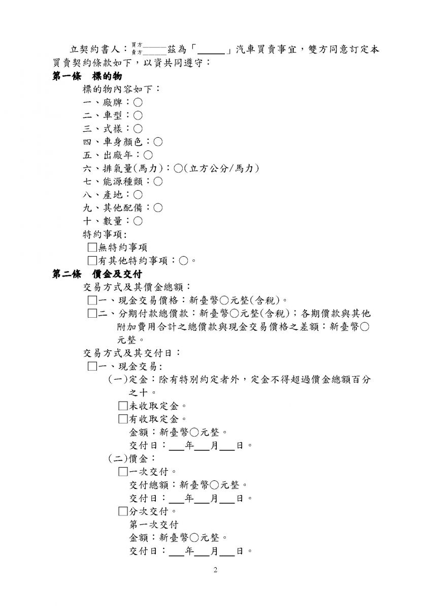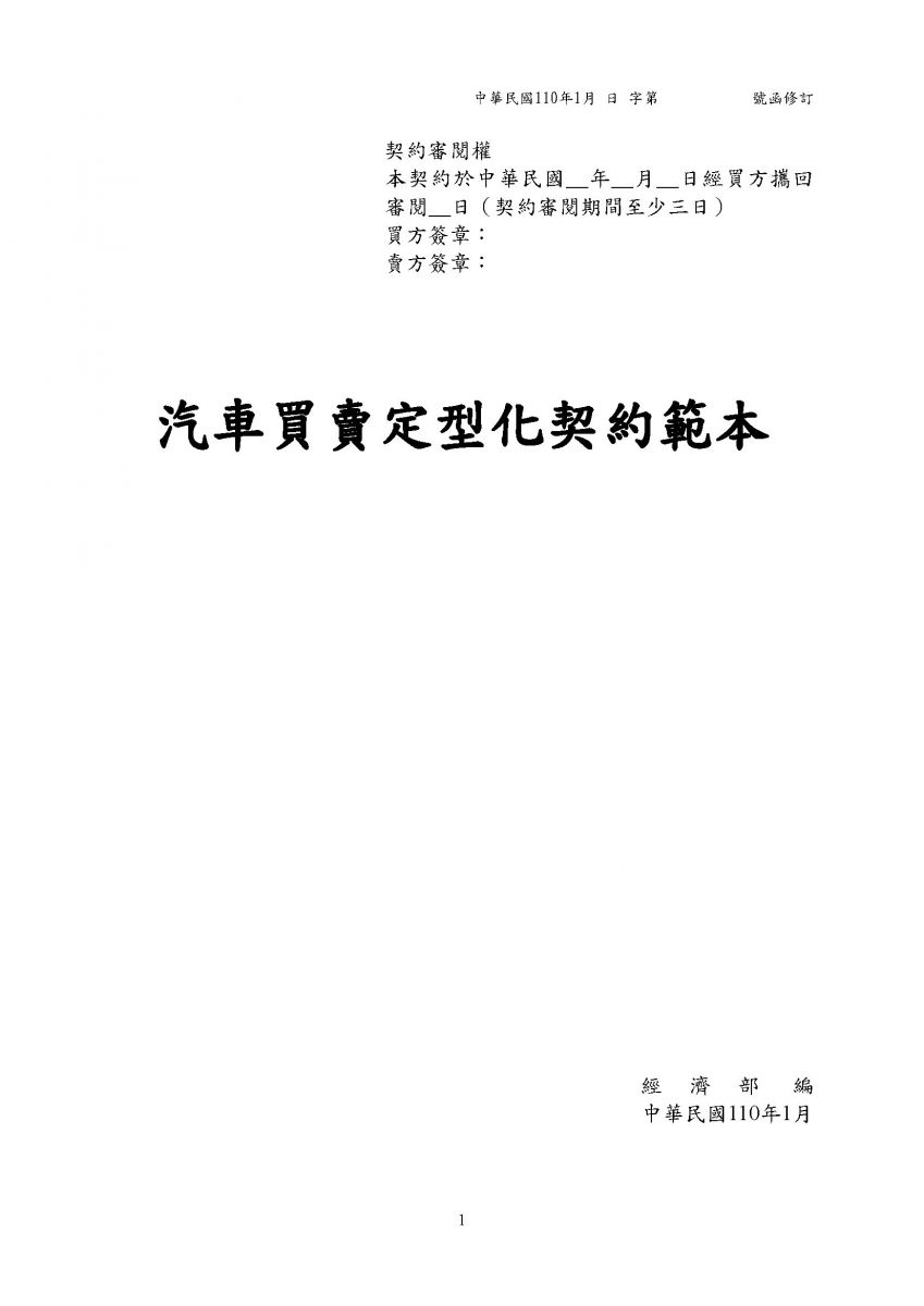 轉知經濟部商業司85年7月24日訂頒之「汽車買賣定型化契約範本」自即日起廢止,另檢送經濟部修訂之「汽車買賣定型化契約範本」,依據經濟部110年1月28日經商字第11002402480號函辦理,請見附件。